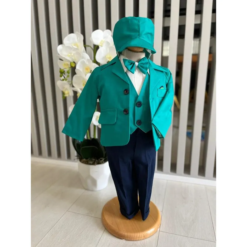 Costum botez 5 piese bumbac, verde mint - DPH375