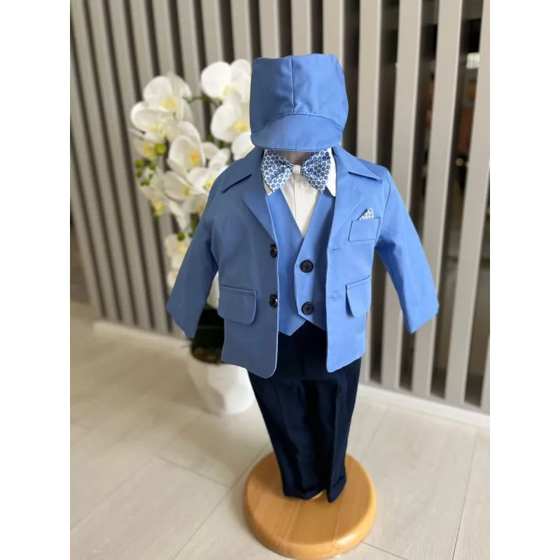 Costum botez 5 piese bumbac, albastru- DPH382