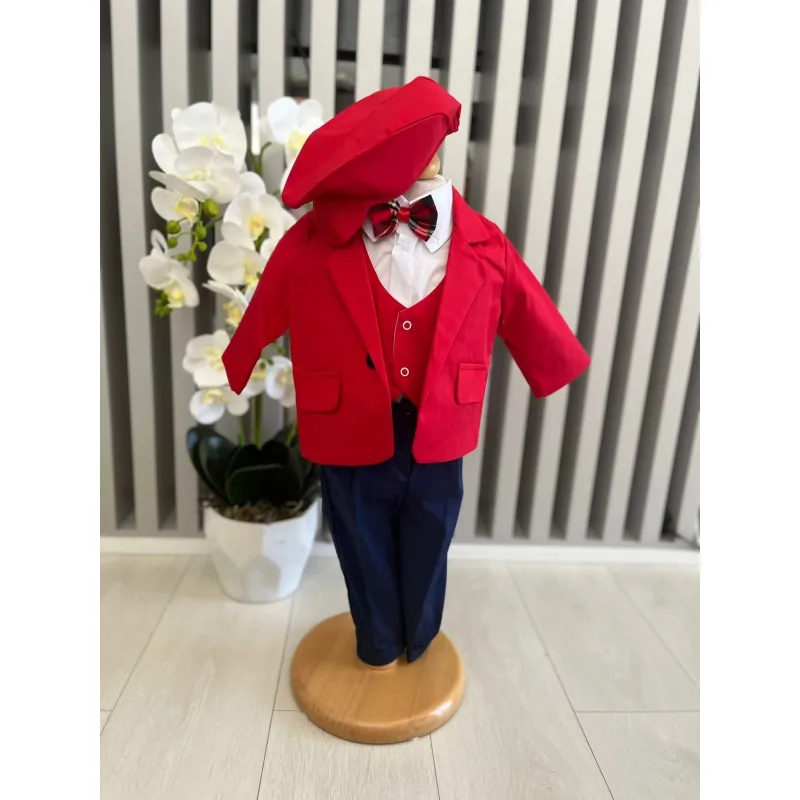 Costum botez 5 piese bumbac, rosu - DPH367