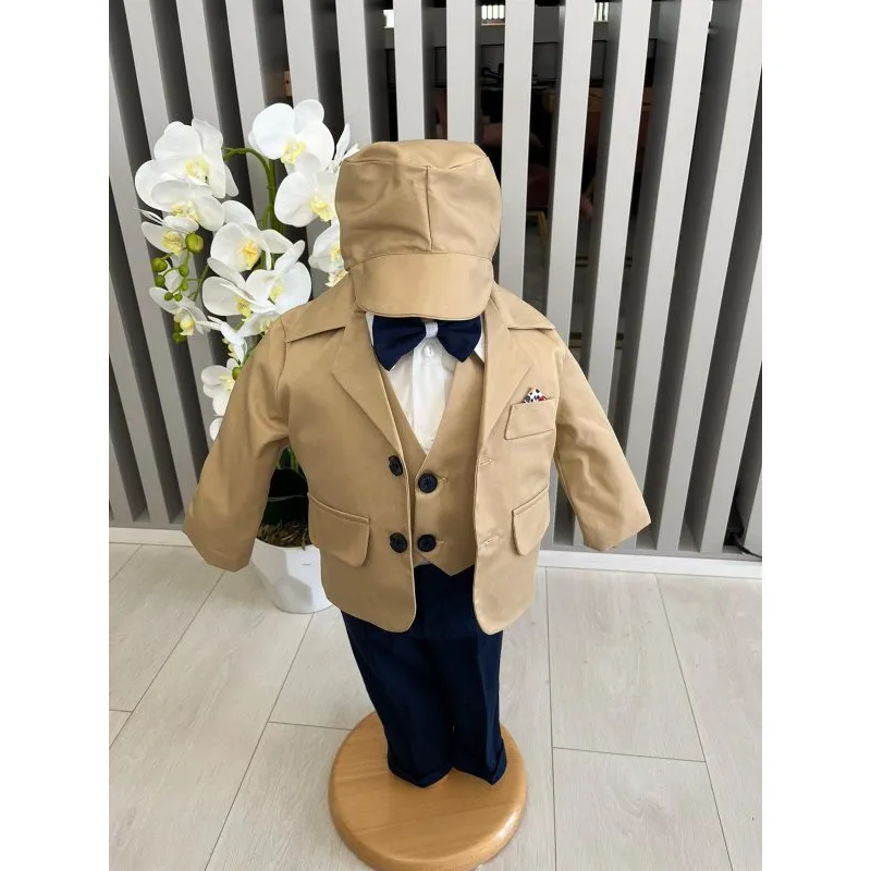 Costum botez 5 piese bumbac, bej - DPH378