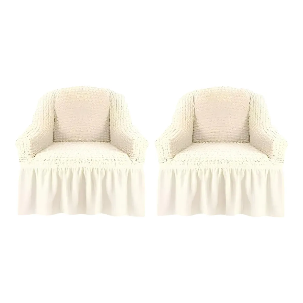 Set 2 Huse Fotoliu Elastice cu Volane, Bej - HEP66