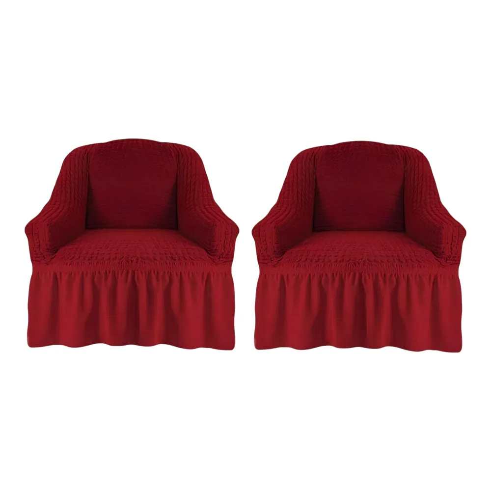 Set 2 Huse Fotoliu Elastice cu Volane, Bordo Visiniu - HEP65