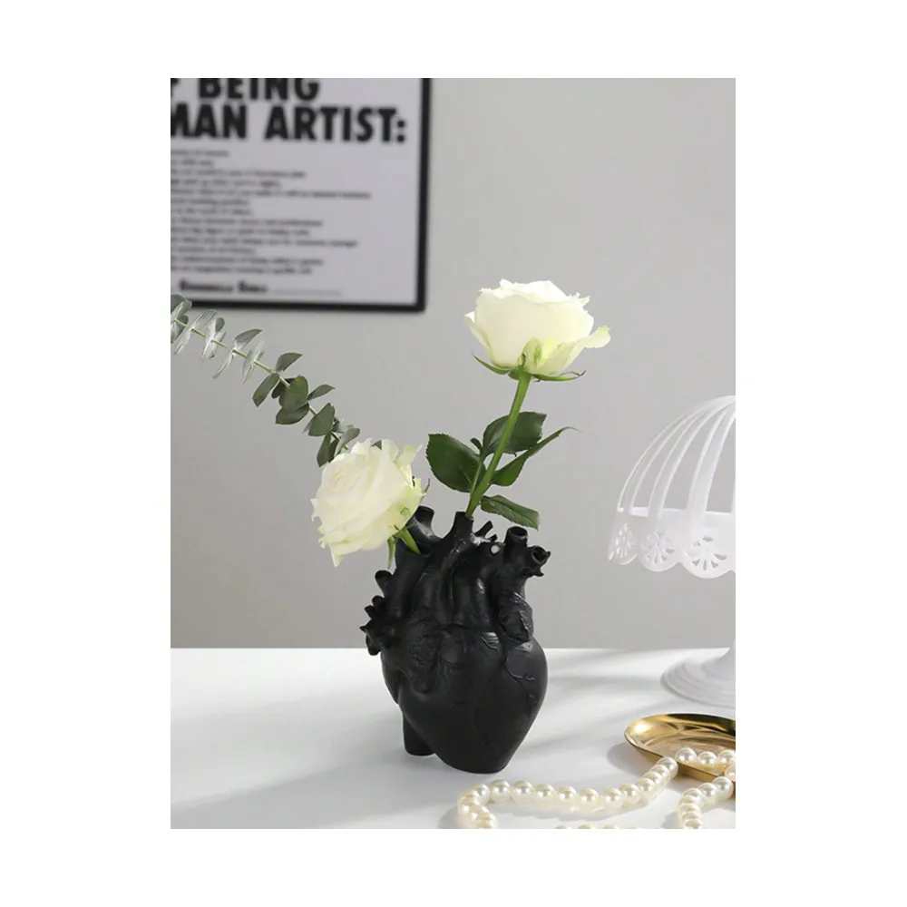 Vaza Decorativa în forma de Inima,Negru, 17x13cm - 504144N
