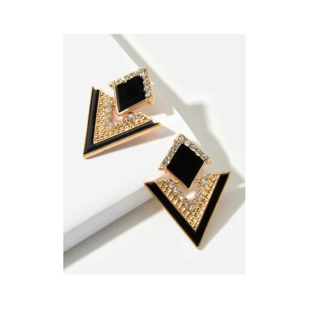 Cercei cu Picătura Geometrica – Negru & Auriu - 296956