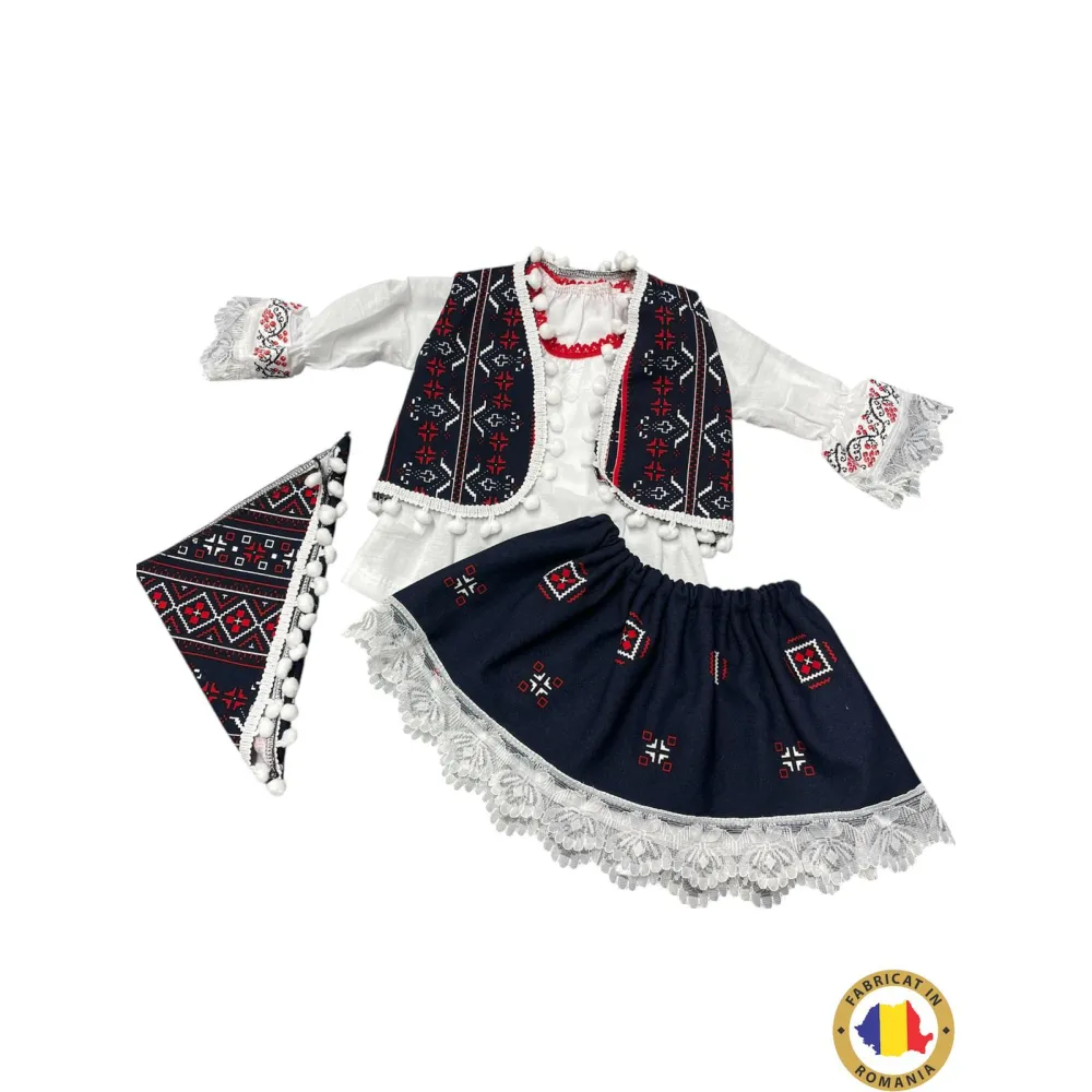 Costum raditional fetite - model alb cu negru