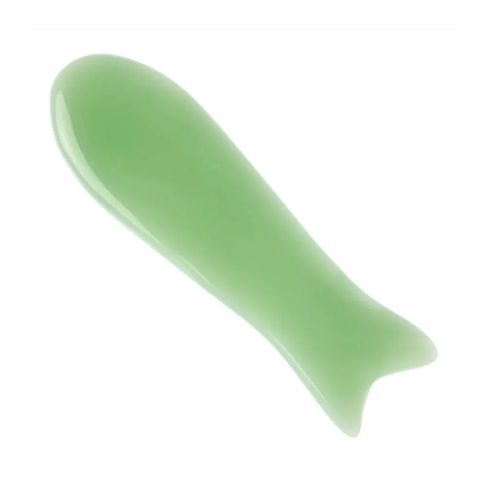 Aparat Masaj Facial - Piatra Gua Sha din Jad Verde - Forma De Peste 11 cm