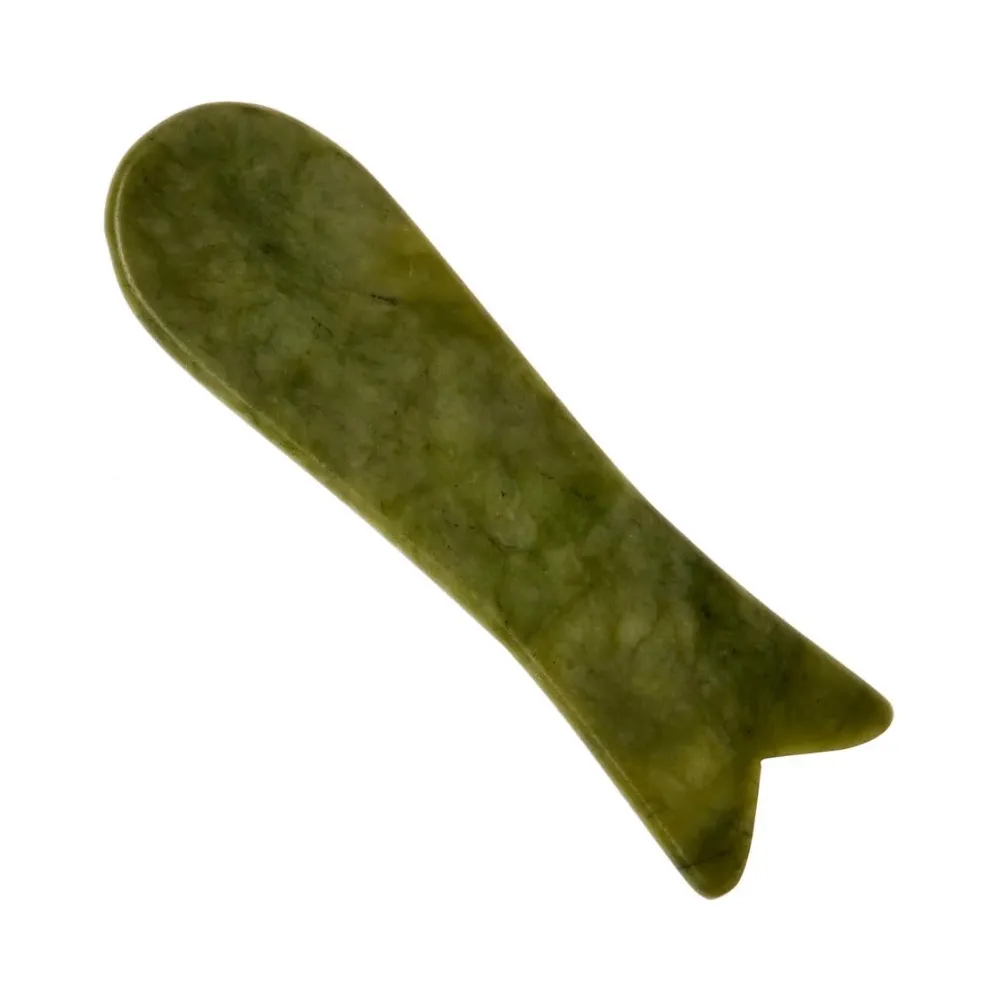Aparat Masaj Facial si Corporal - Piatra Gua Sha din Jad Verde Pal - Forma Peste - 11 cm