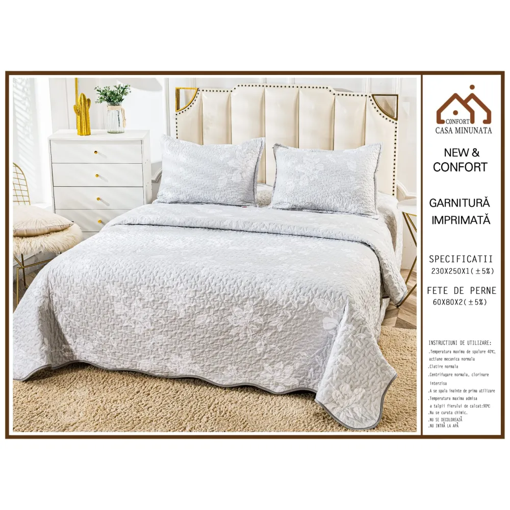 Set Cuvertura Pat Catifea,Gri -LIM27