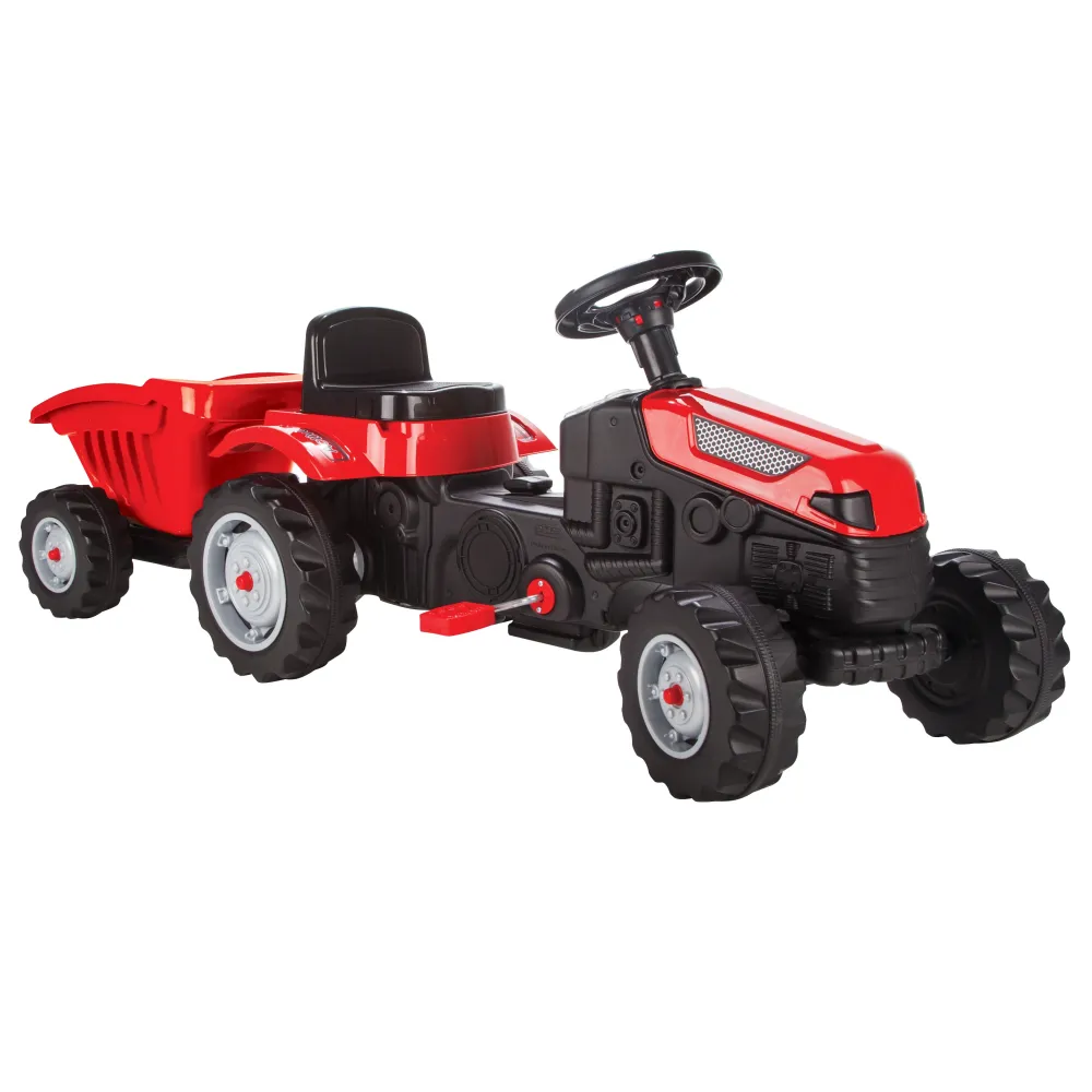 Jucarie pentru copii, tractor cu pedale + remorca, plastic, negru cu rosu- INV7059593