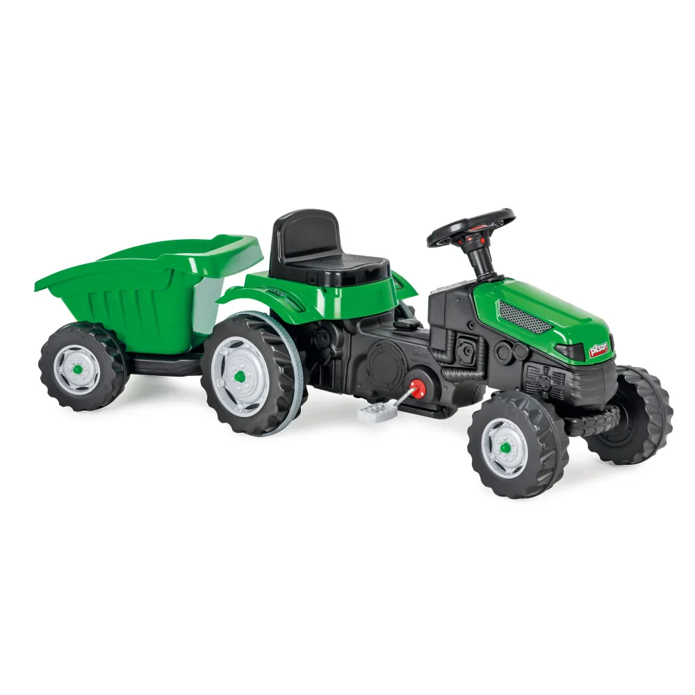 Jucarie pentru copii, tractor cu pedale + remorca, plastic, negru cu verde- INV7059594