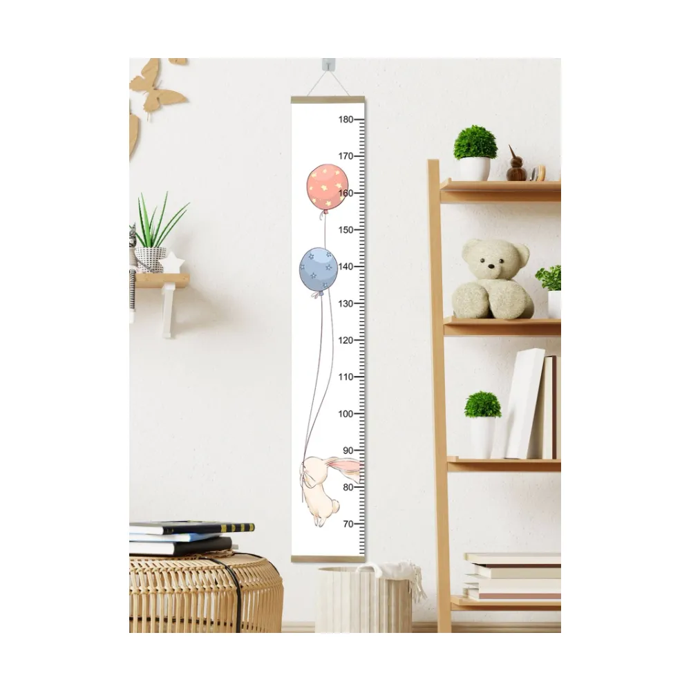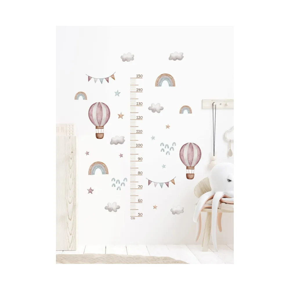 Sticker Perete Autocolant cu Centimetru pentru Copii -Balon cu Aer Cald si Curcubeu