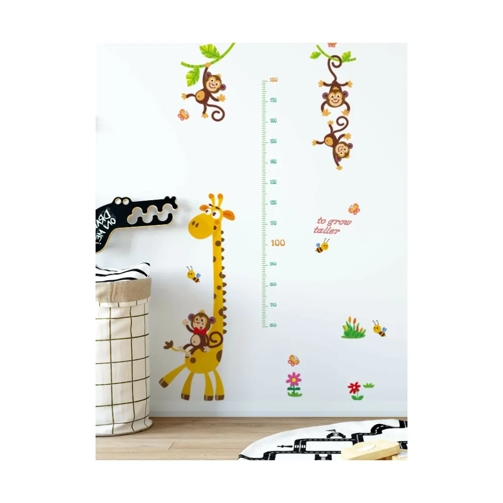 Sticker Perete Autocolant cu Centimetru pentru Copii - Girafa si Maimute