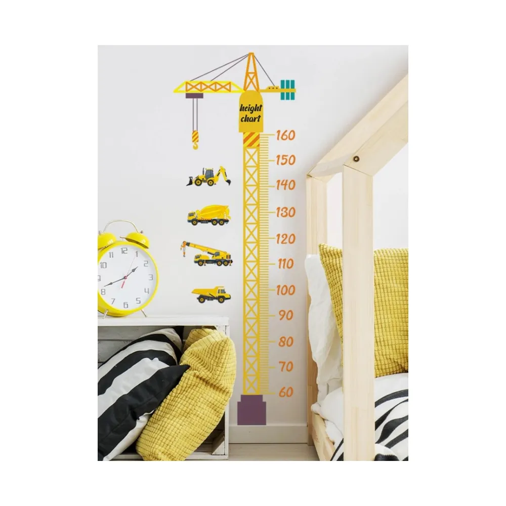 Sticker Perete Autocolant cu Centimetru pentru Copii - Utilaje Constructii si Masini