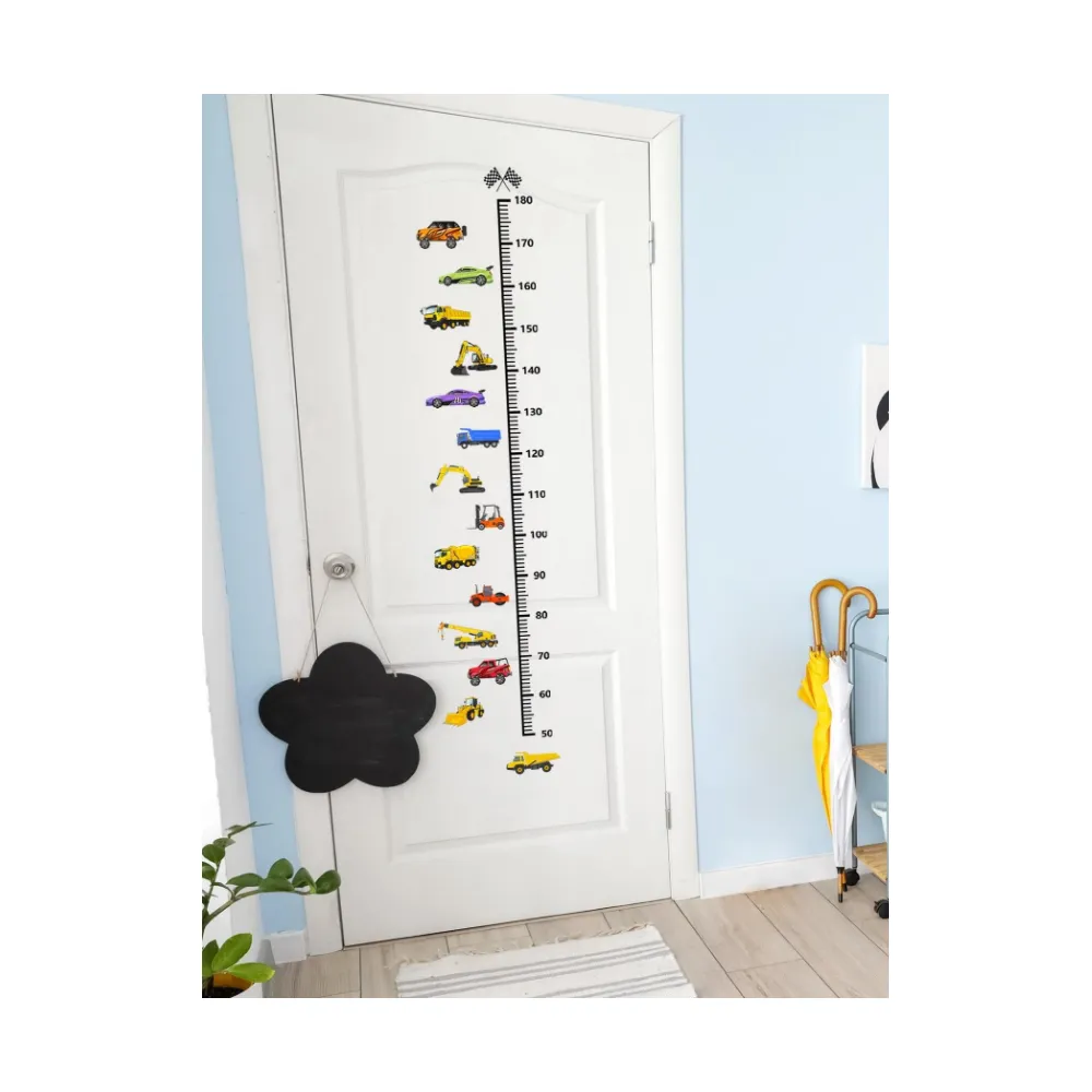 Sticker Perete Autocolant cu Centimetru pentru Copii - Autovehicule