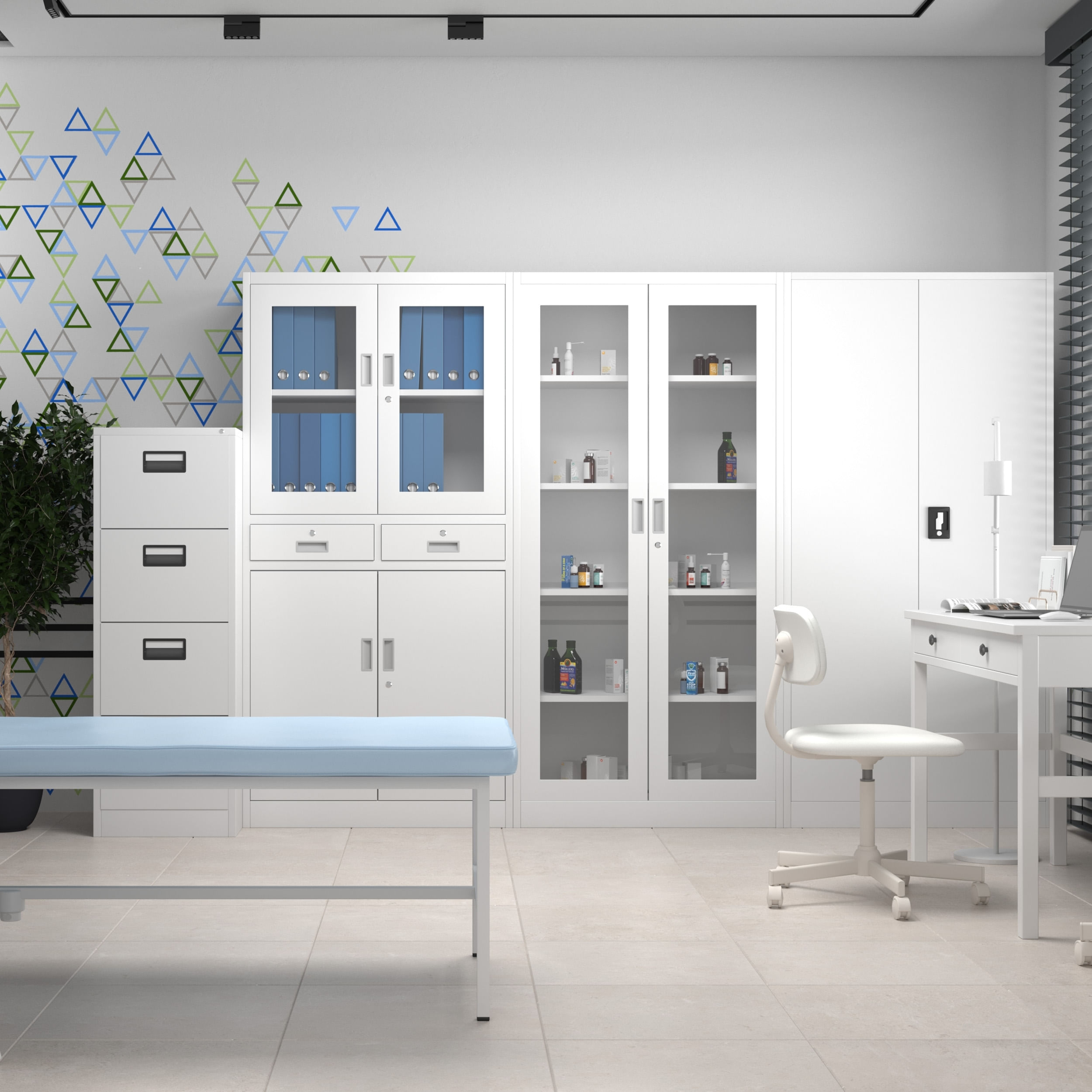 Dulap metalic de birou Alb/ Stejar auriu: Eco Design JAN II