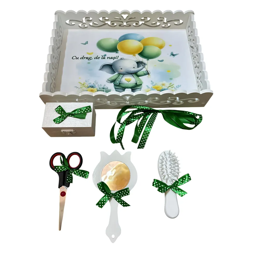 Tavita pentru Mot cu 6 Piese - Elefantul cu Baloane - TPM63 Alb cu Verde