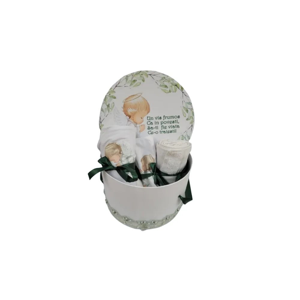 Set complet cu Trusou Botez + Cutie Buretata pentru hainute + Lumanare - TB924