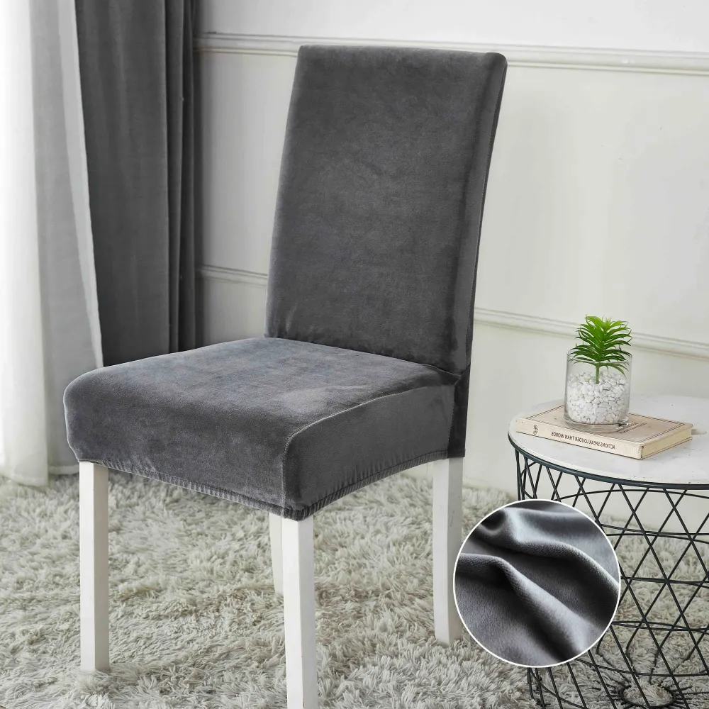 Set 6 Huse Elastice pentru Scaun, Catifea, Gri-JO233