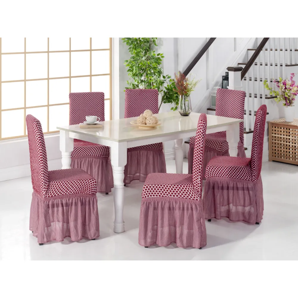 Set 6 Huse pentru Scaun din Bumbac Rosu Bordeaux-HEP74