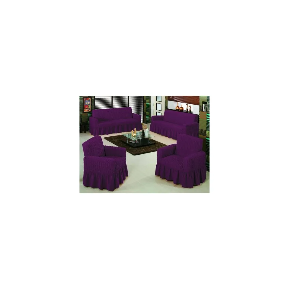 Set huse 3211, pentru canapea 3 locuri, canapea 2 locuri si 2 fotolii, elastica- 3211mov
