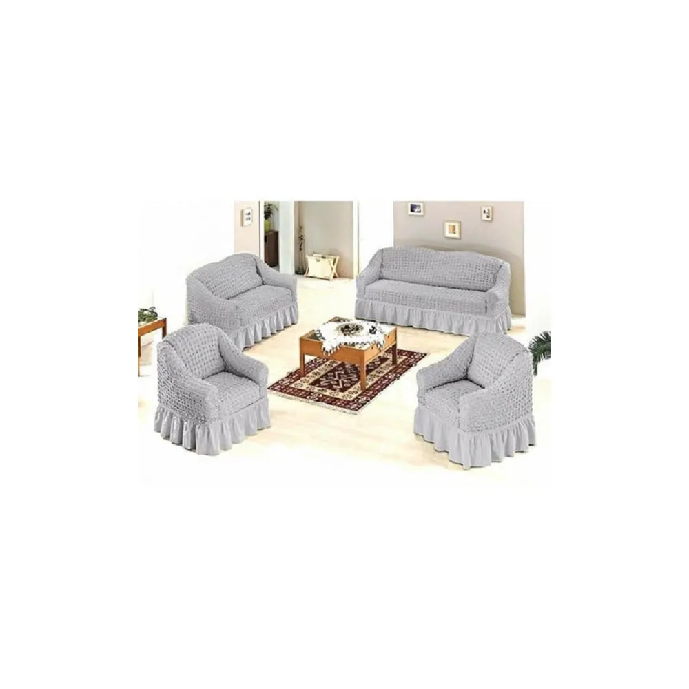 Set 4 huse 3211, pentru canapea 3 locuri, canapea 2 locuri si 2 fotolii Gri Deschis- HSE02
