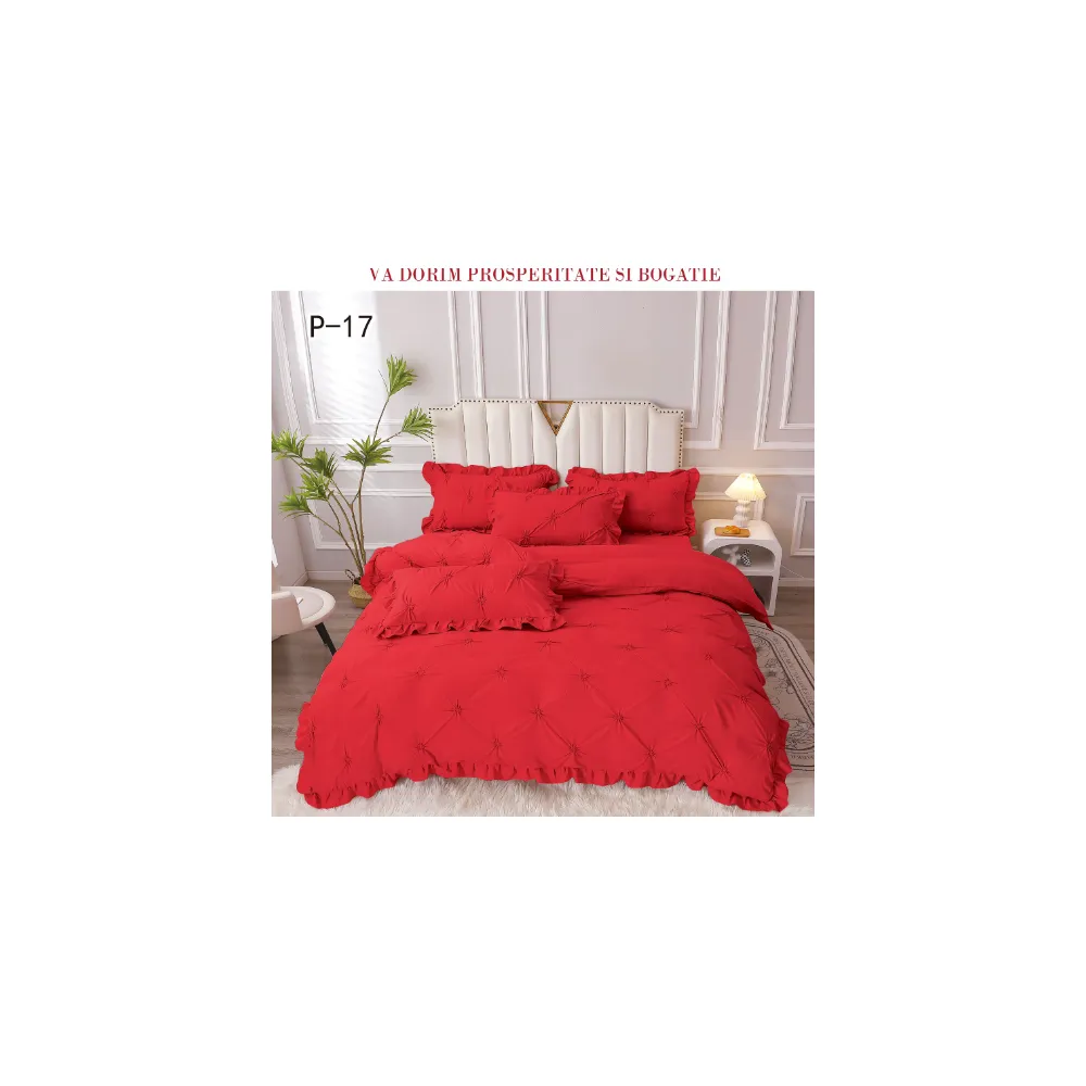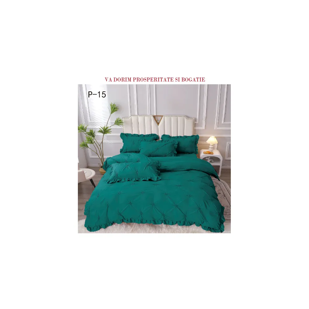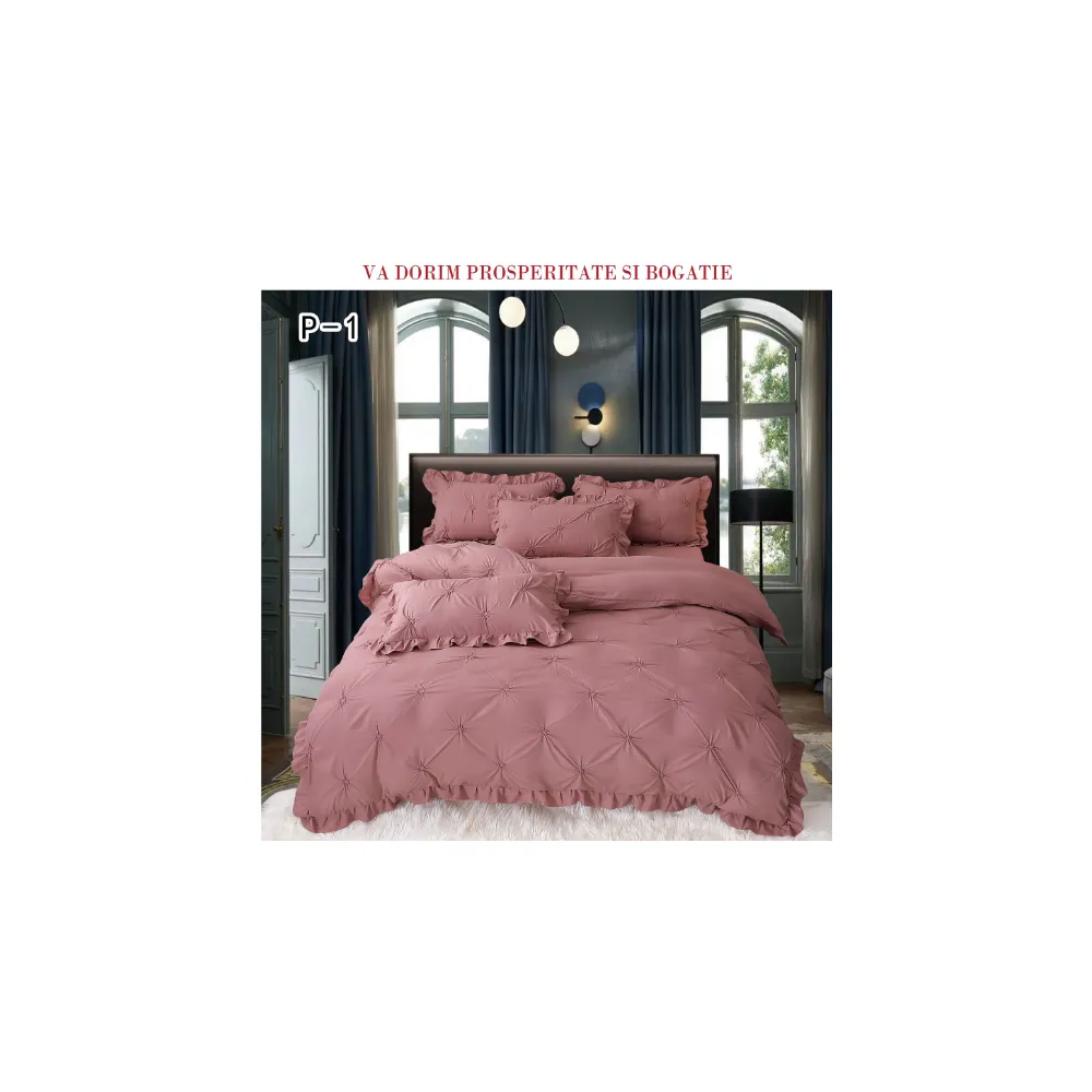Lenjerie de Lux cu Pliuri si Volan, 6 Piese pentru Pat Dublu - PUC140