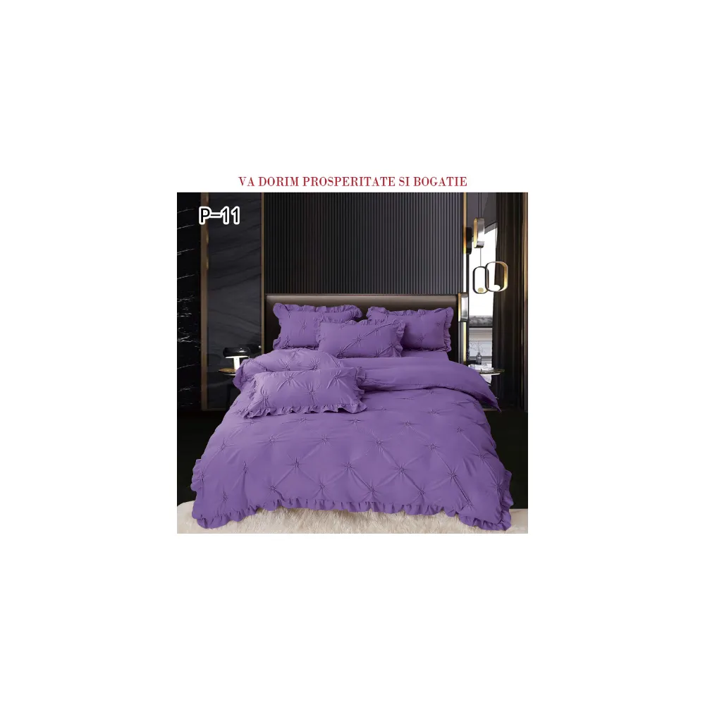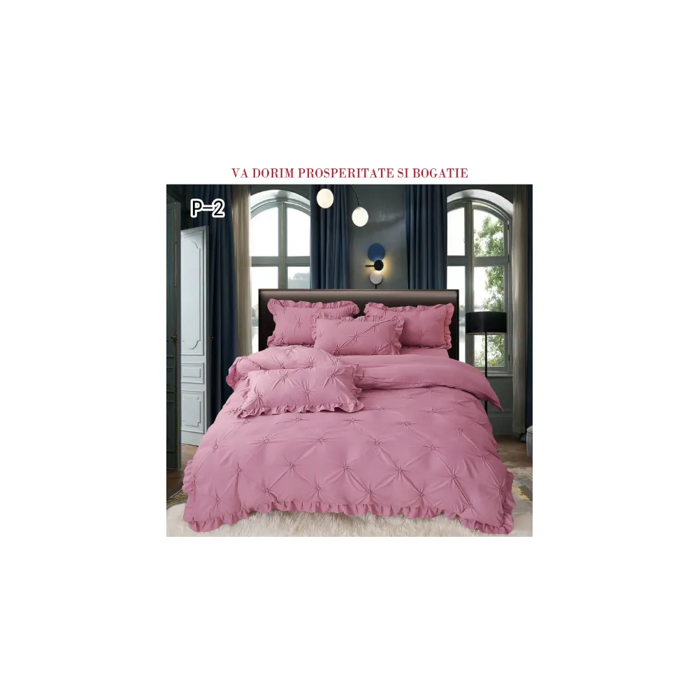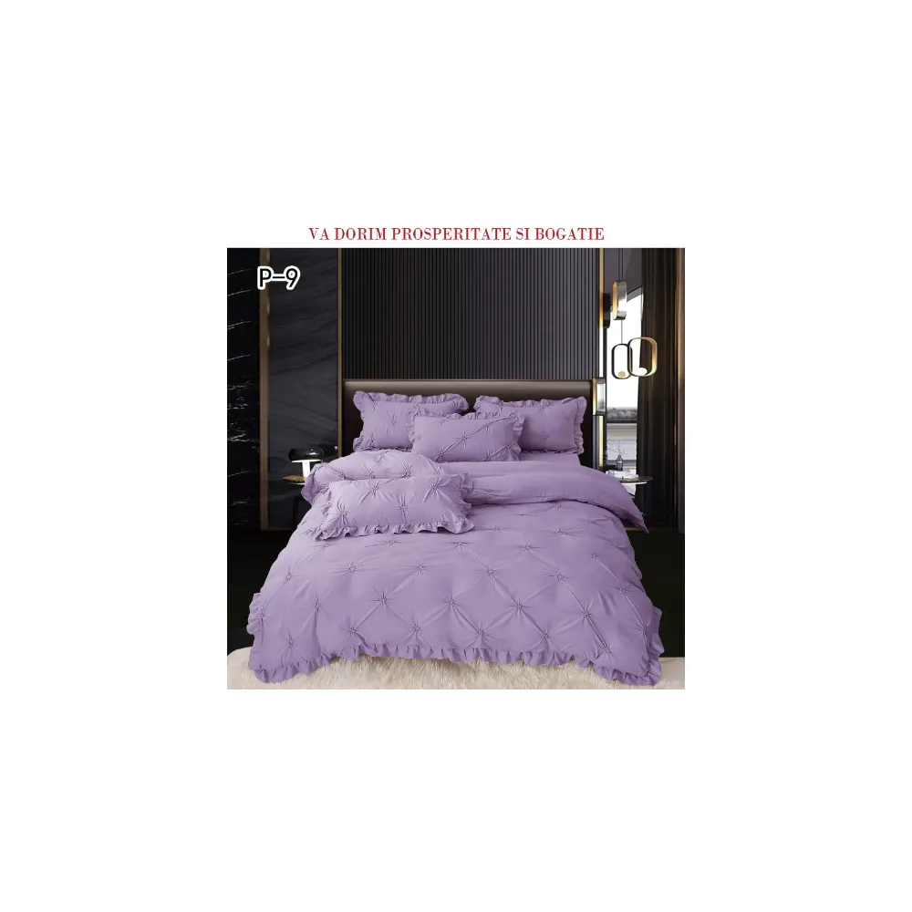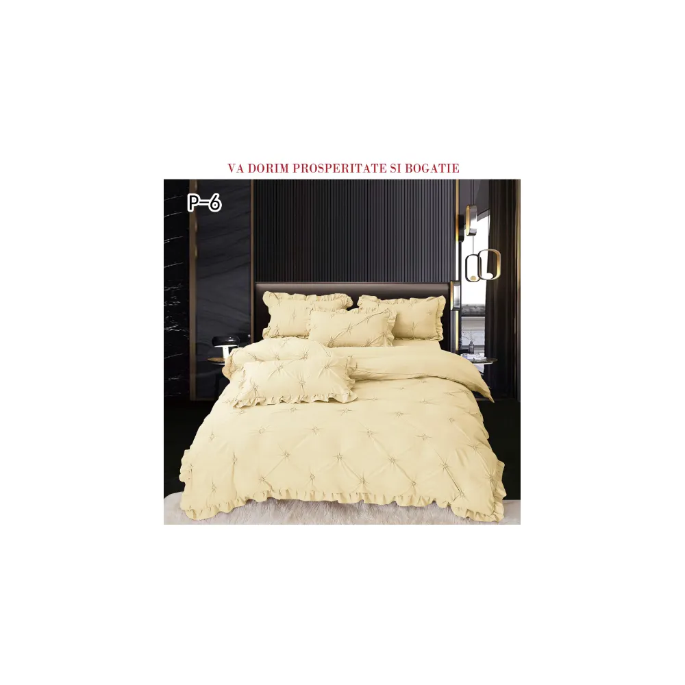 Lenjerie de Lux cu Pliuri si Volan, 6 Piese pentru Pat Dublu - PUC145