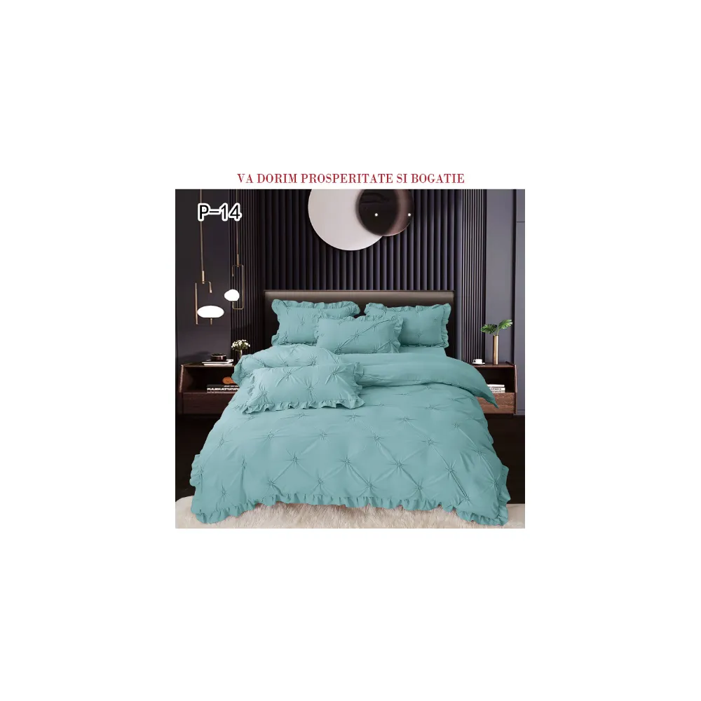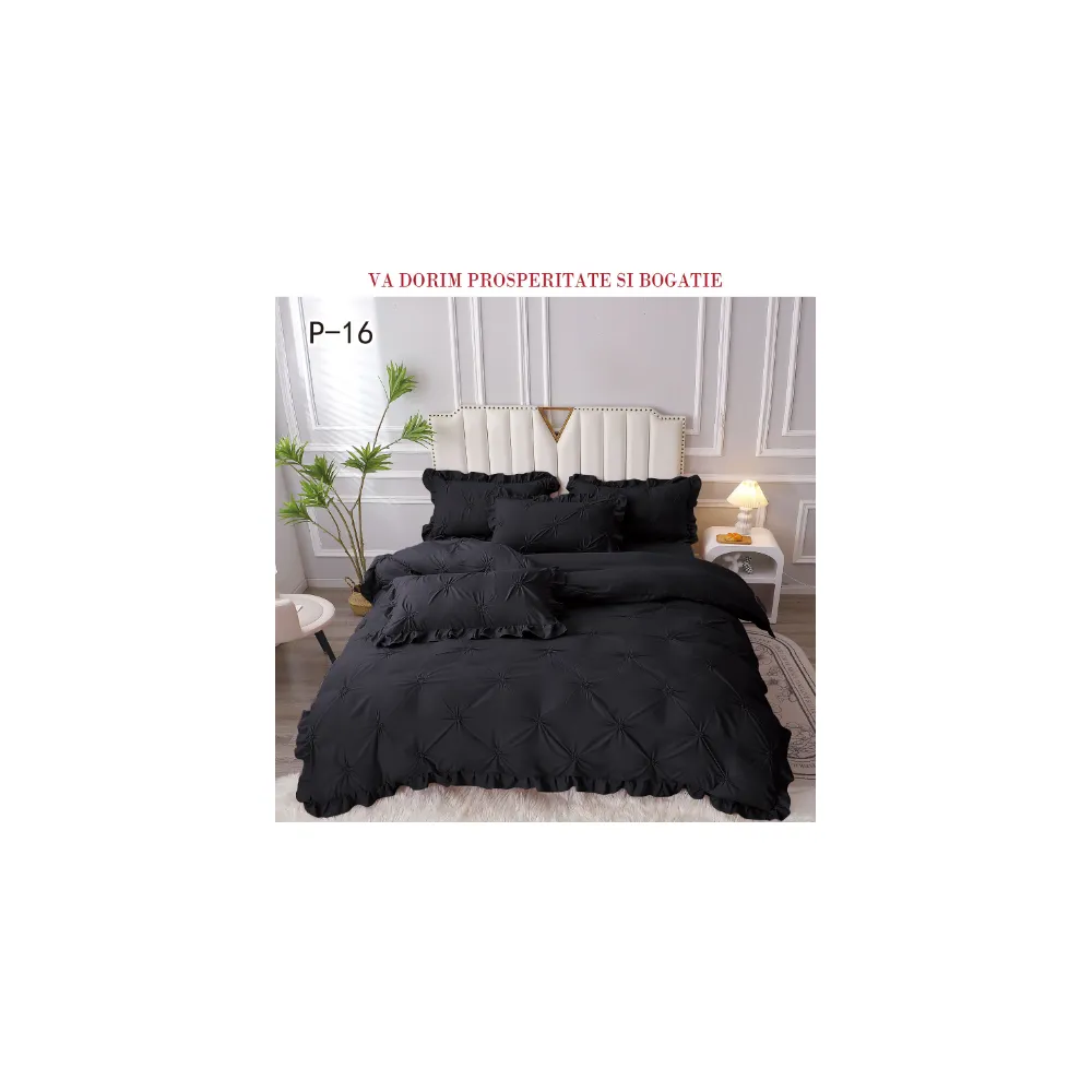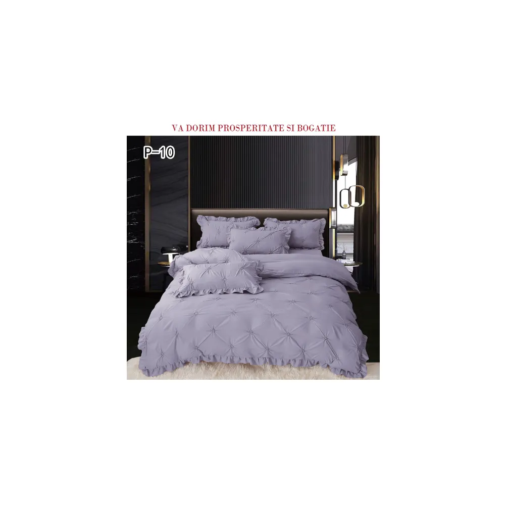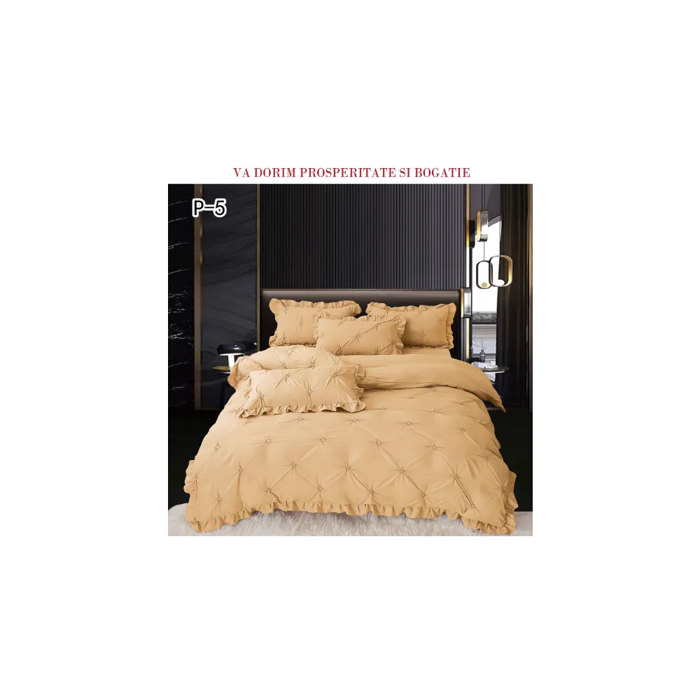 Lenjerie de Lux cu Pliuri si Volan, 6 Piese pentru Pat Dublu - PUC145