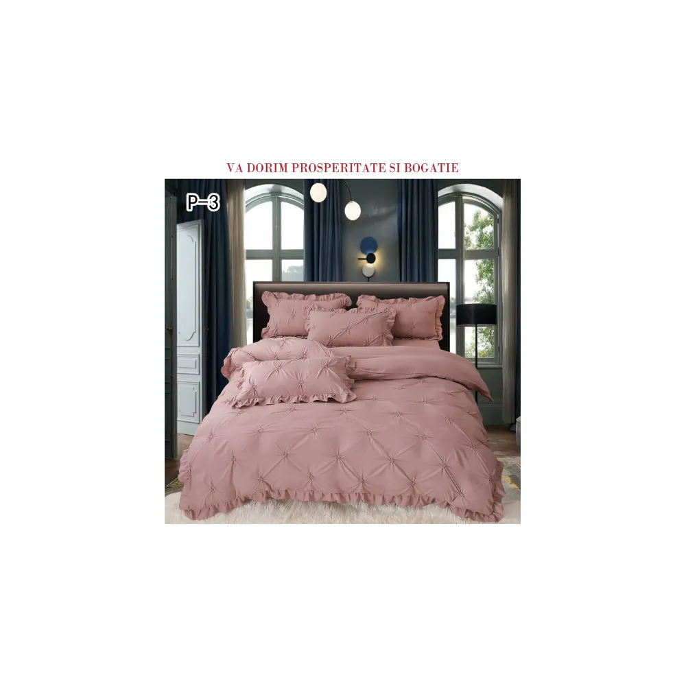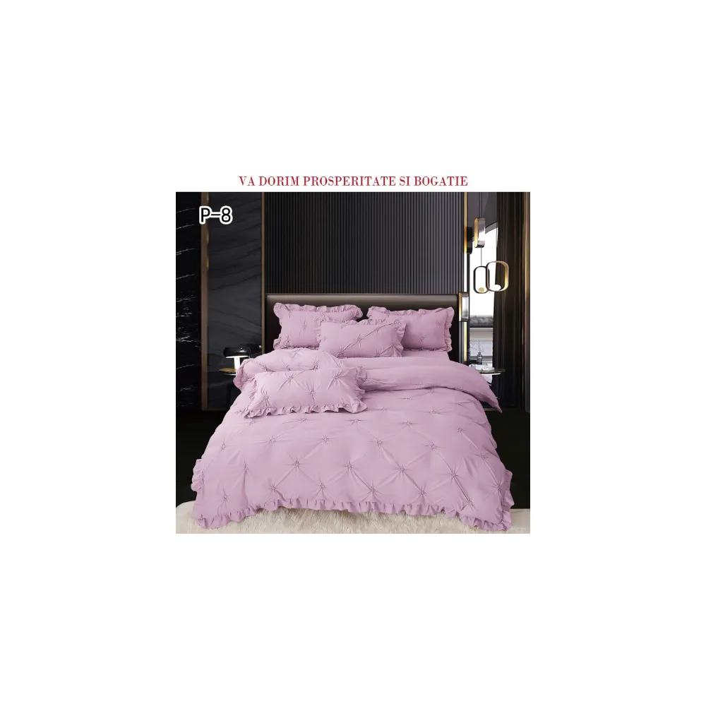 Lenjerie de Lux cu Pliuri si Volan, 4 Piese pentru Pat Dublu - PUC142