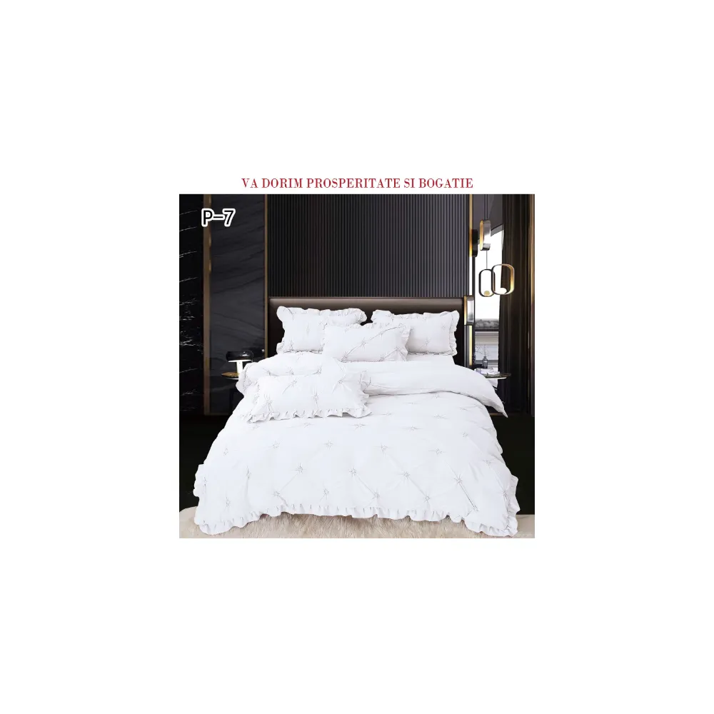 Lenjerie de Lux cu Pliuri si Volan, 6 Piese pentru Pat Dublu - PUC149