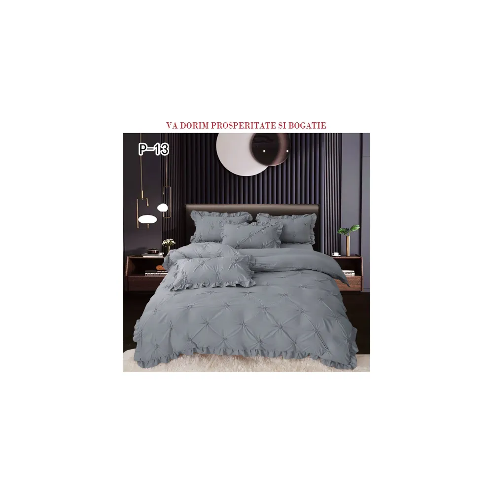 Lenjerie de Lux cu Pliuri si Volan, 6 Piese pentru Pat Dublu - PUC143