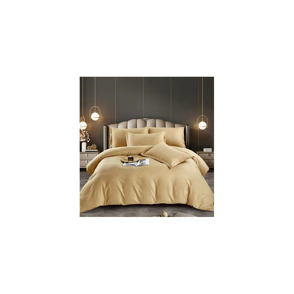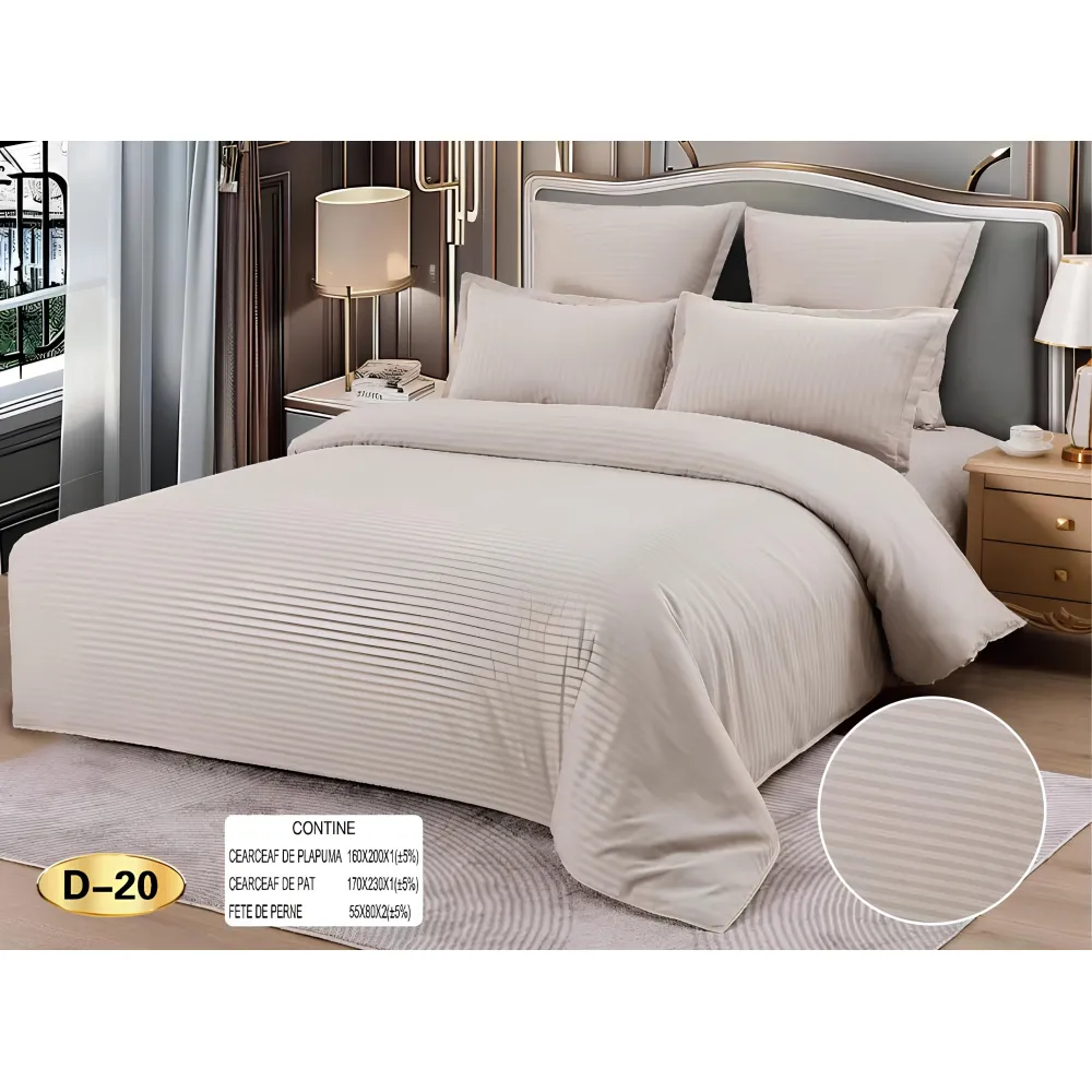 Lenjerie de Pat Damasc 6 Piese, Dungi Duble, Bej - JOJ794