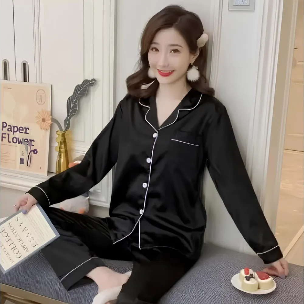 Set Pijama de Dama 2 Piese din Satin, Negru - MEI82