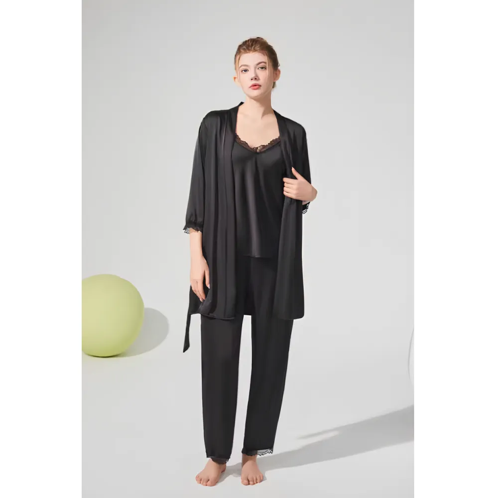 Set Pijama de Dama 3 Piese din Satin, Negru - ANI162