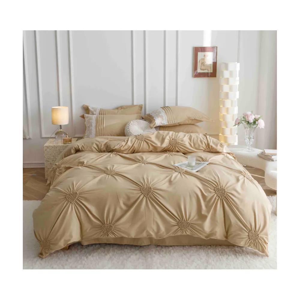 Lenjerie de Pat Dublu, Bumbac Finet-Creponat, 6 Piese, Bej Deschis-LJ1110