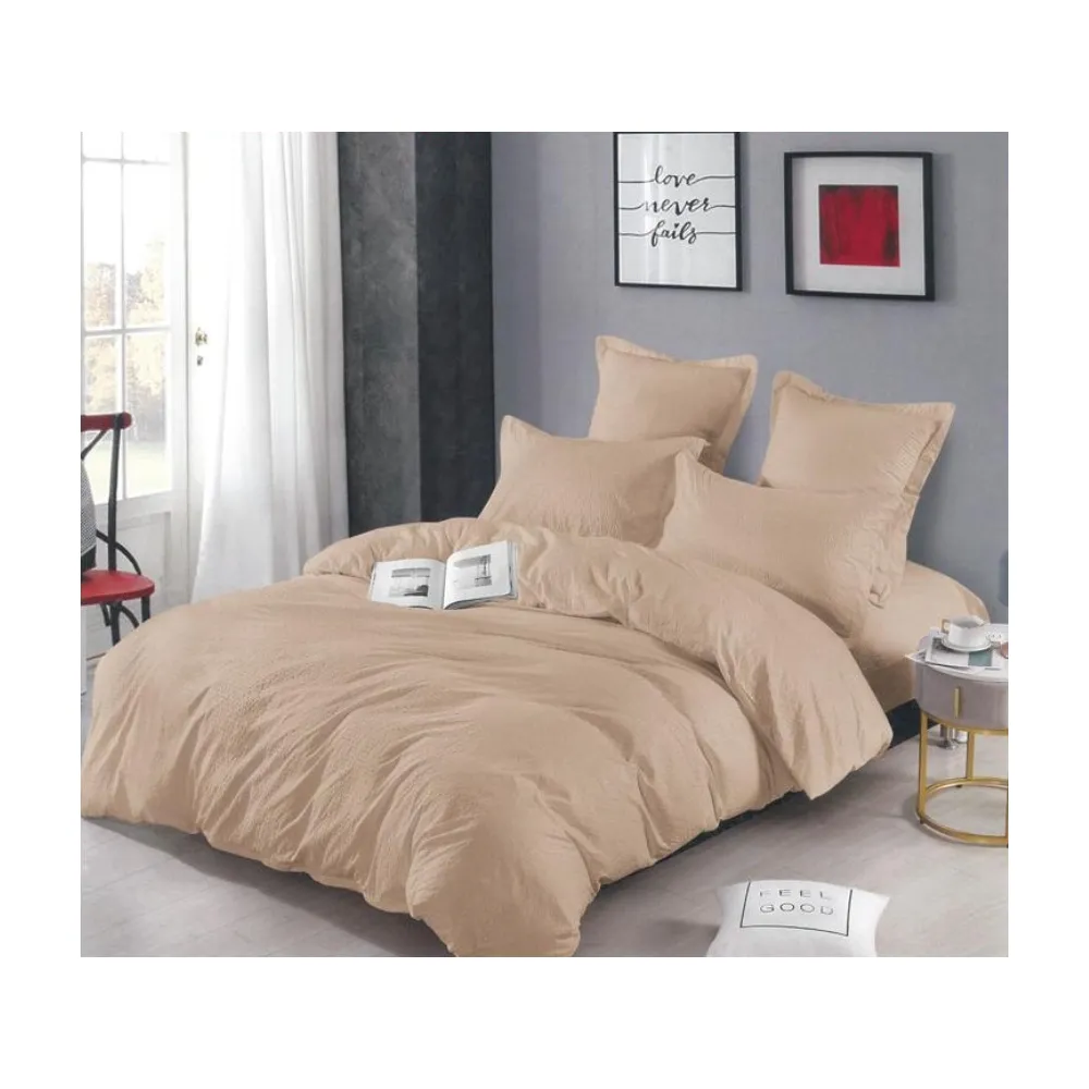 Lenjerie de Pat Dublu, Bumbac Finet-Creponat, 6 Piese, Bej - CPL222
