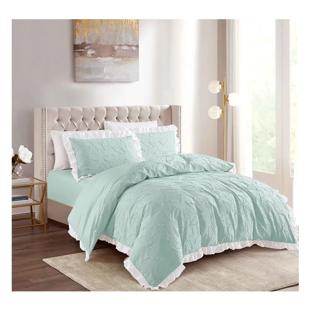Lenjerie de Pat Finet, Pliuri Brodate, 6 pcs- JO115 Verde Menta