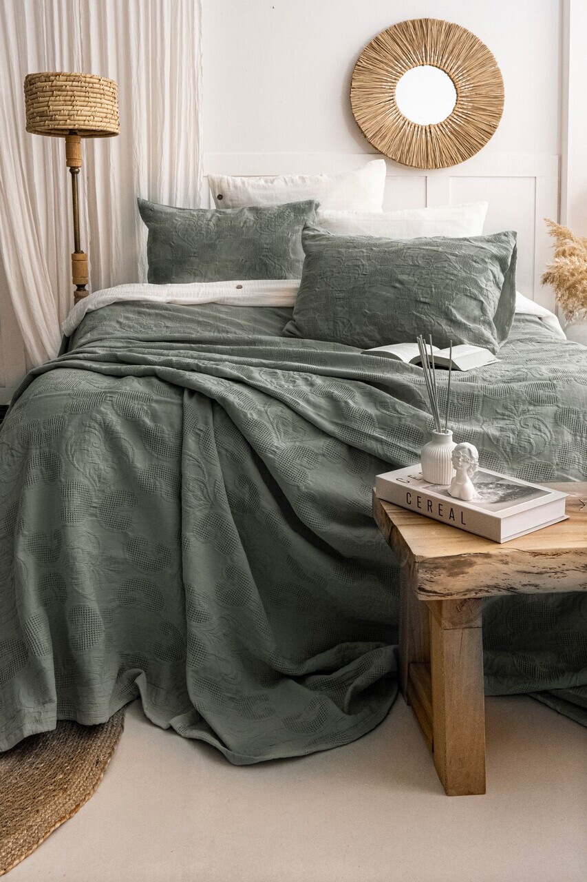 Set cuvertura de pat dubla 3 piese, Lessentiel Maison, Julia, Bumbac, Verde