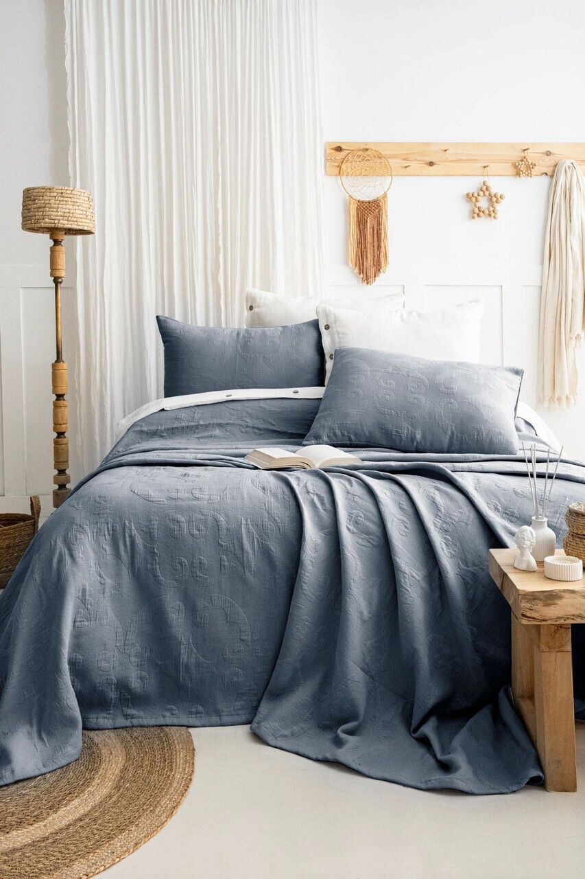 Set cuvertura de pat dubla 3 piese, Lessentiel Maison, Silvia, Bumbac, Indigo