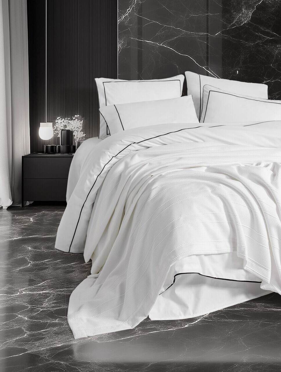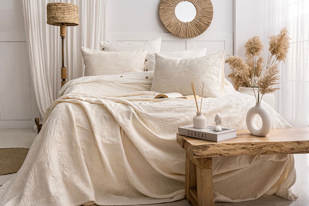 Double Quilt Cover Set & Pique, Lessentiel Maison, Guher, Bumbac, Alb