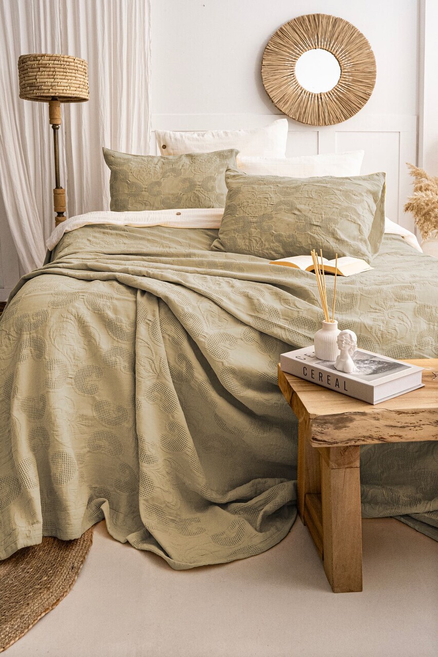 Set cuvertura de pat dubla 3 piese, Lessentiel Maison, Silvia, Bumbac, Verde