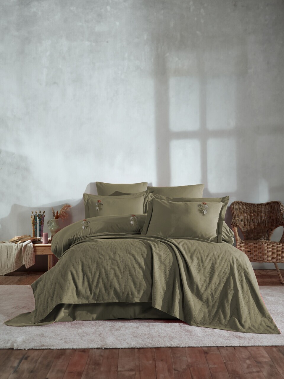 Set cuvertura de pat dubla 3 piese, Lessentiel Maison, Julia, Bumbac, Kaki