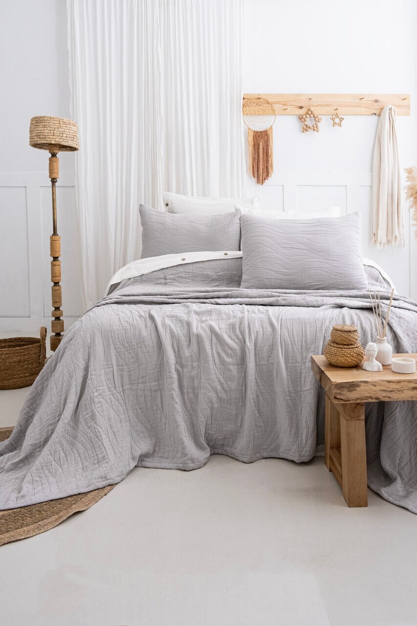 Set cuvertura de pat dubla 3 piese, Lessentiel Maison, Ilda, Bumbac, Gri
