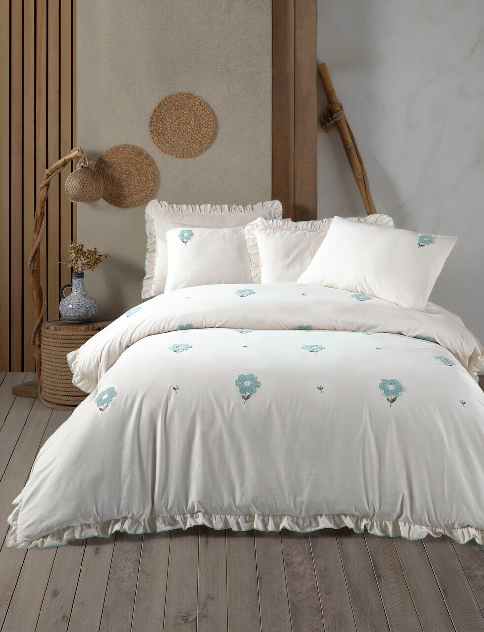 Set cuvertura de pat dubla 3 piese, Lessentiel Maison, Janna, Bumbac, Albastru