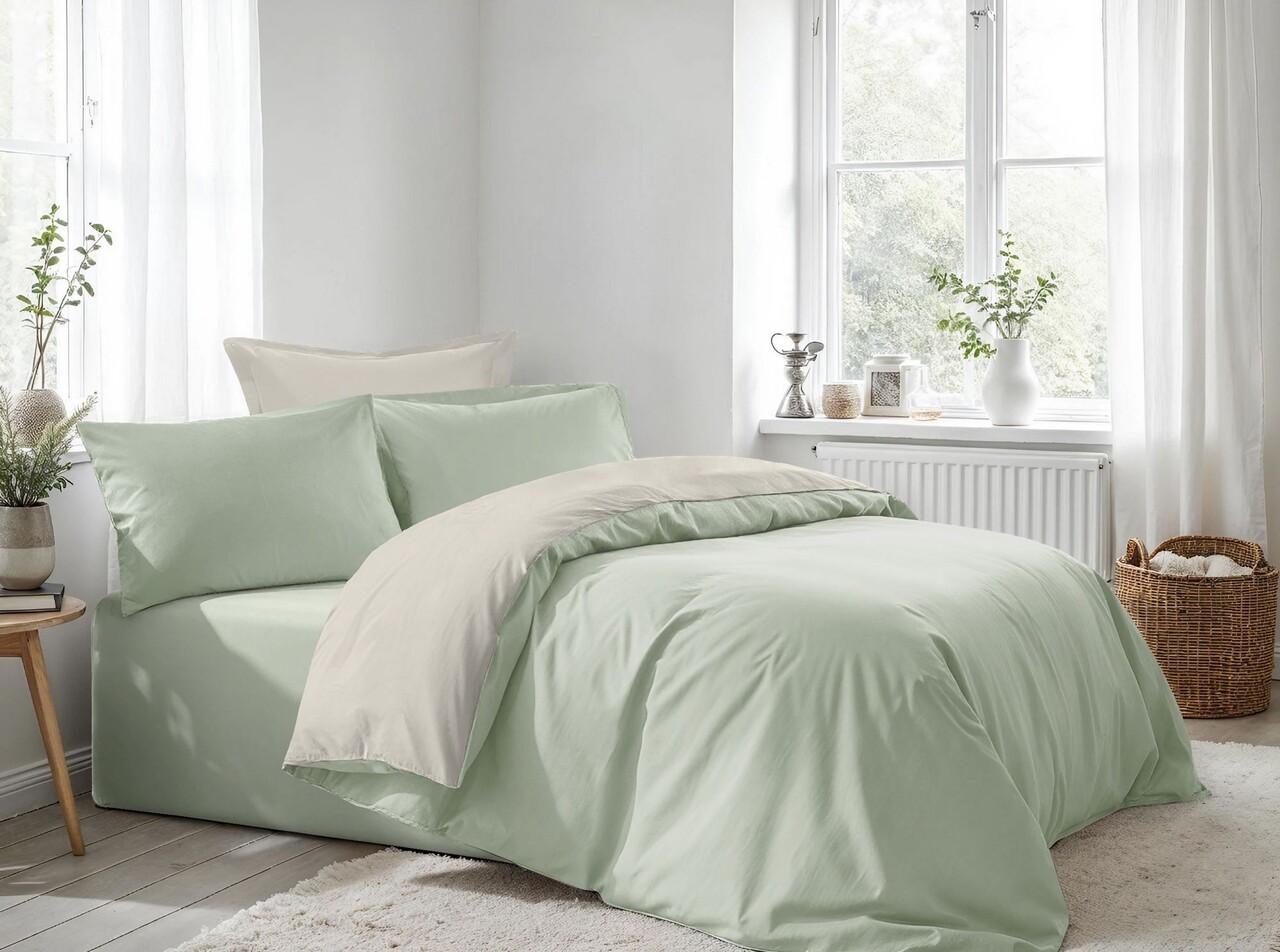 Lenjerie de pat dubla (FR), Lessentiel Maison, Light Green, Crem, Verde deschis, Crem