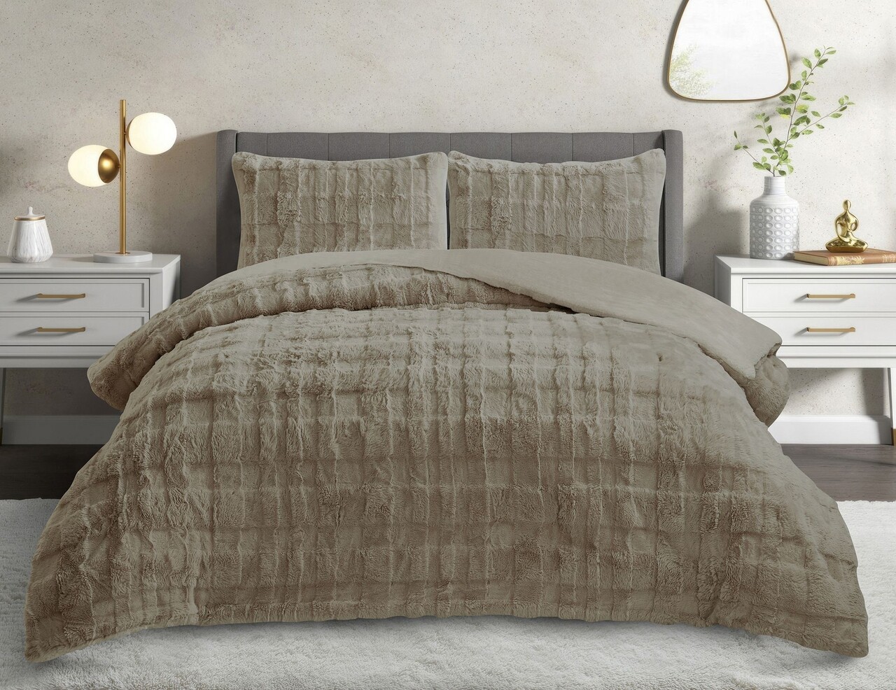 Set pilota dublu si perna, Lessentiel Maison, Rabbit, Poliester, Cappuccino