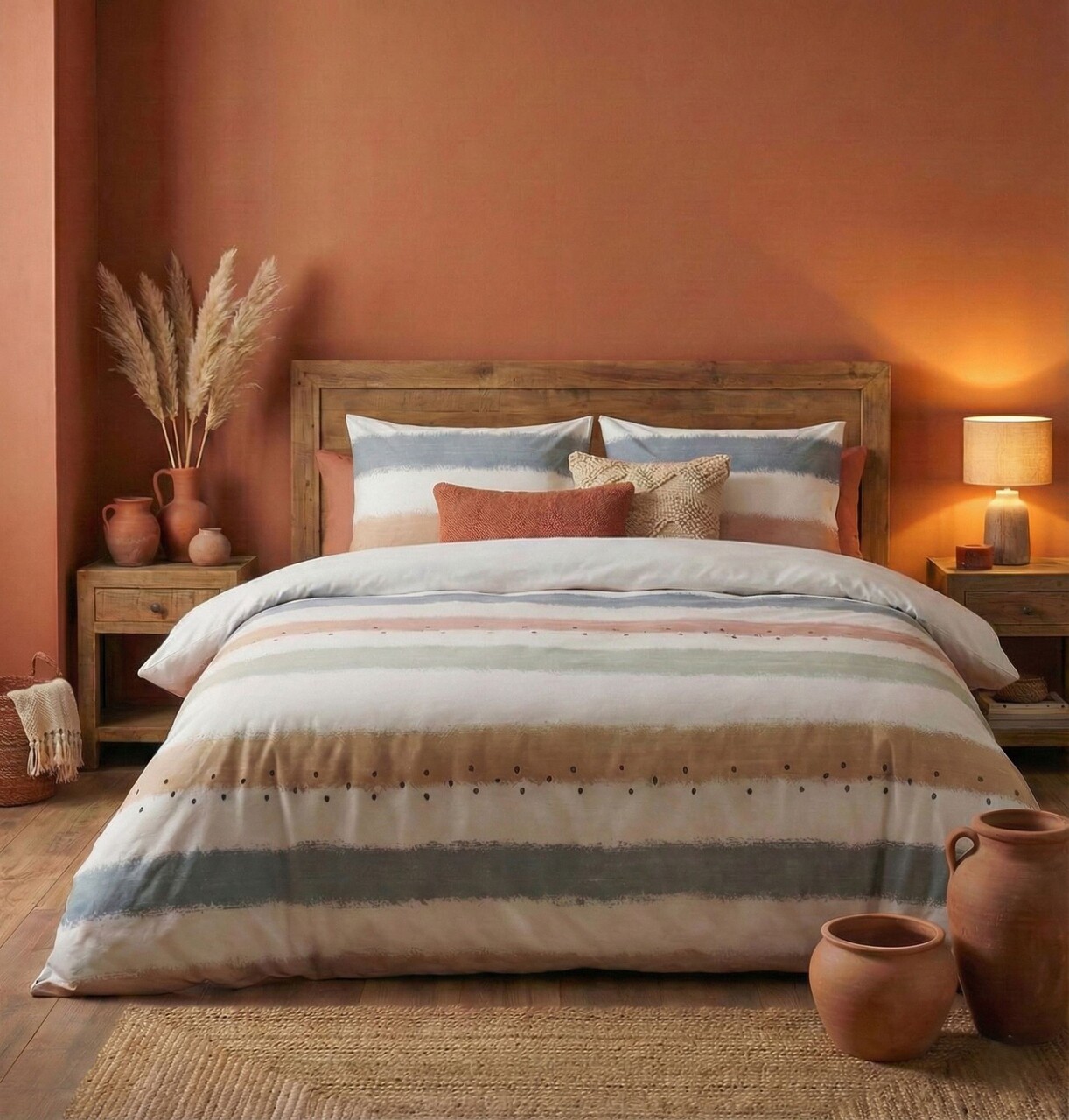 Lenjerie de pat dubla Super King (FR), 3 piese, Lessentiel Maison, Sunset, Bumbac;Poliester, Roșu / Albastru / Bej / Alb