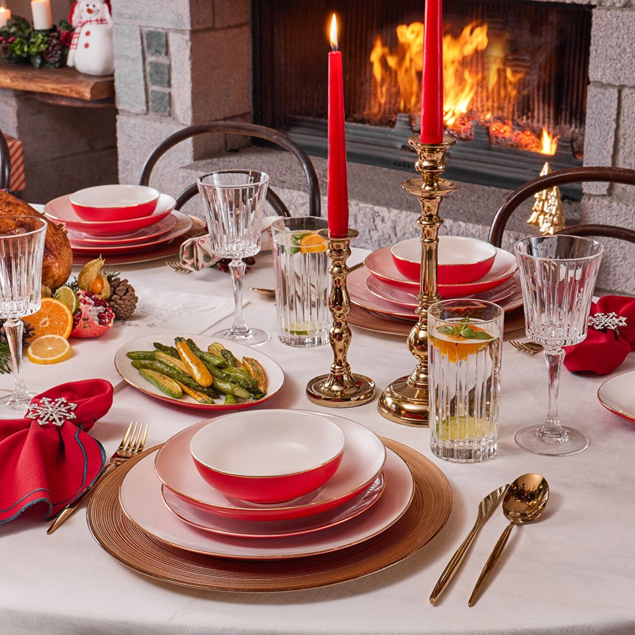 Set de cină (58 bucăți), Lessentiel Maison, 216KRC1274, Farfurie de cină: 20,5 x 20,5 x 4 cm (12 bucăți), Roșu / Alb