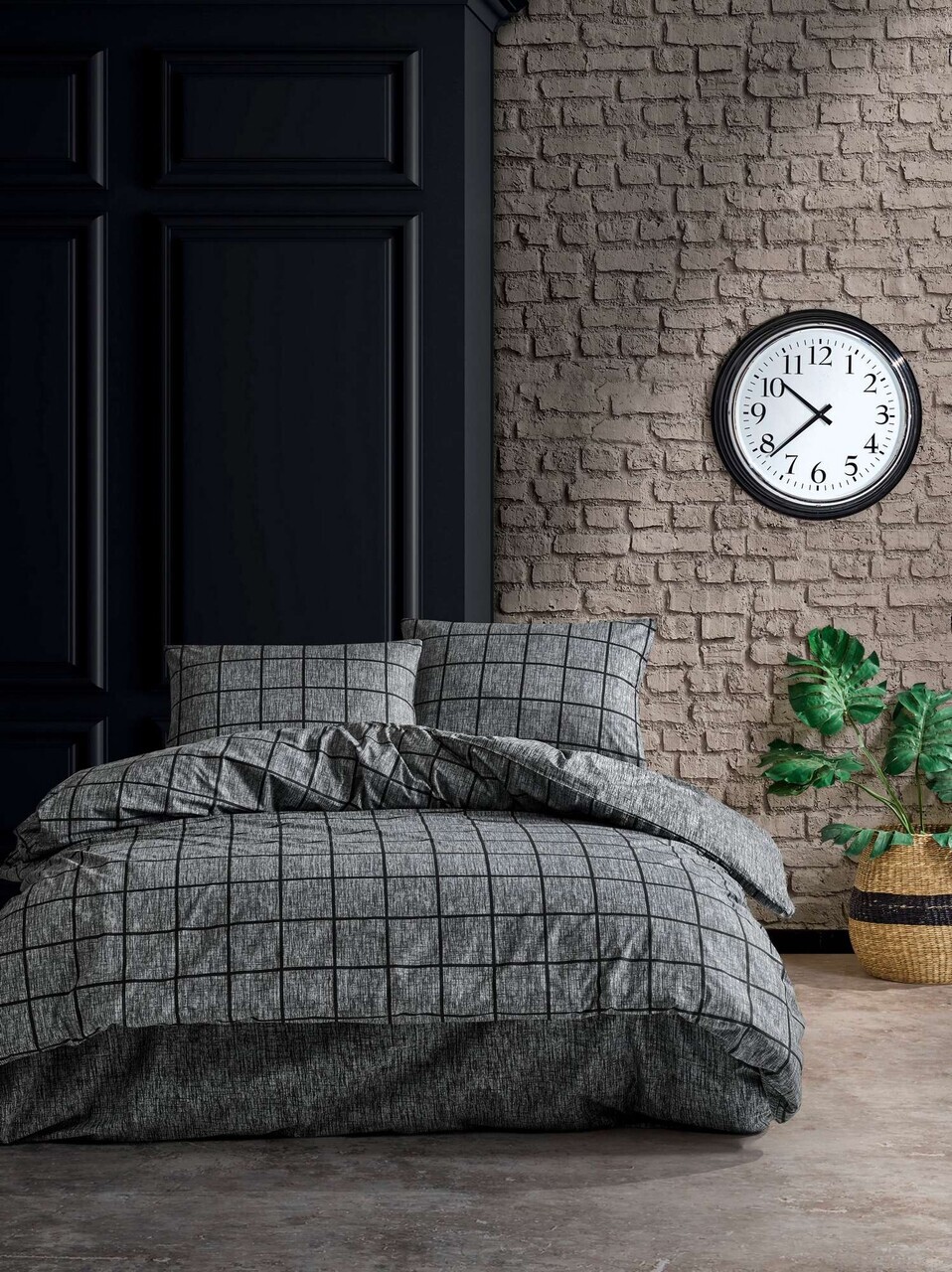 Lenjerie de pat dubla, Lessentiel Maison, Kare, Bumbac Ranforce, Negru