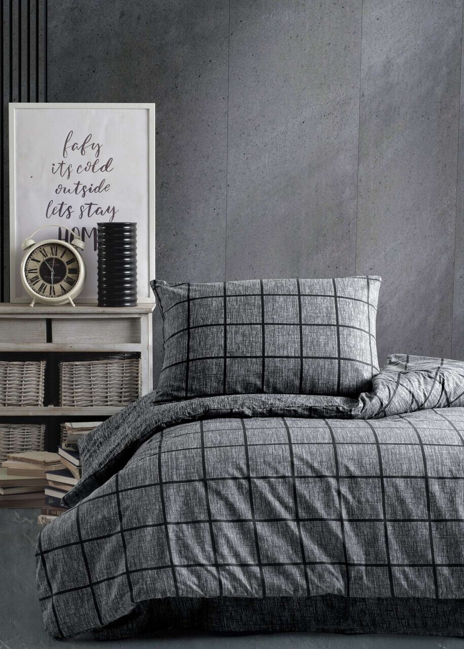 Lenjerie de pat pentru o persoana, Lessentiel Maison, Code, Bumbac Ranforce, Negru